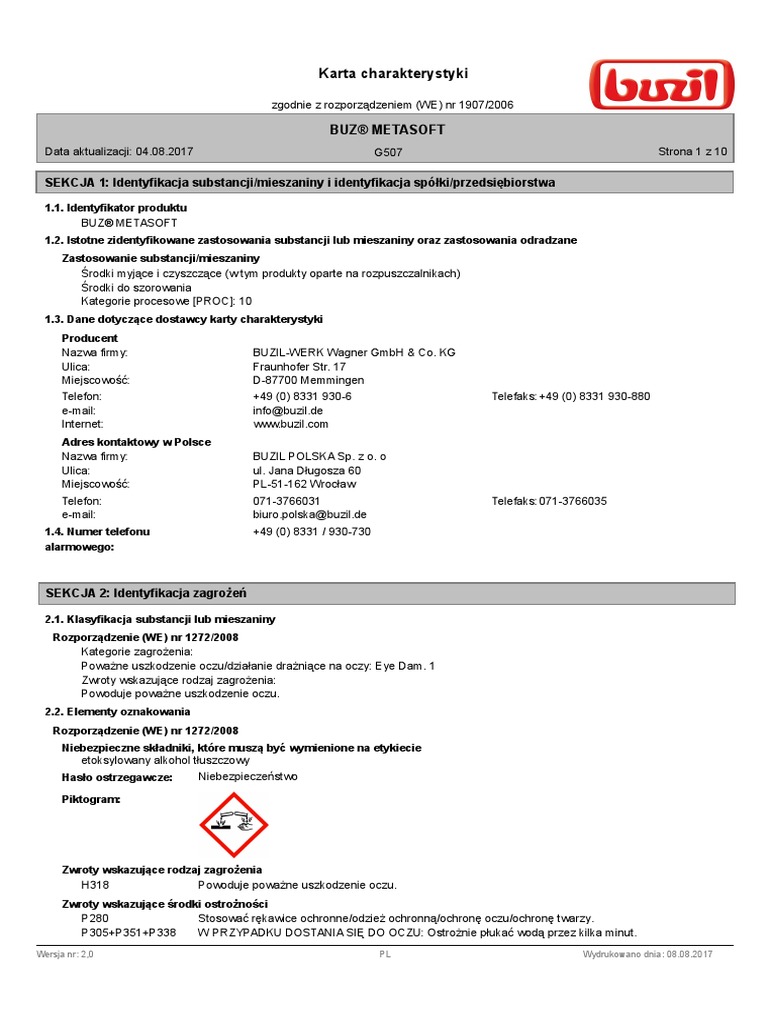 Buz Metasoft G 507 - Cleaning solution from Buzil