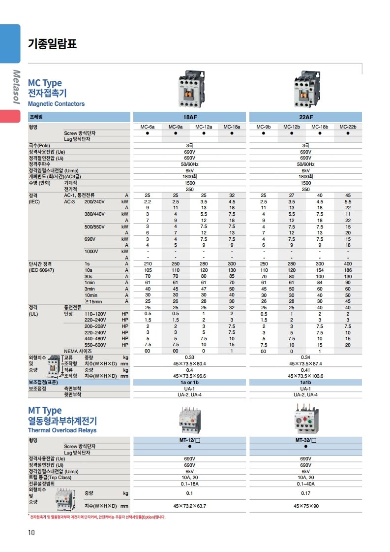 Metasol MCCB/MS 기종선정 조견표 : 네이버 블로그