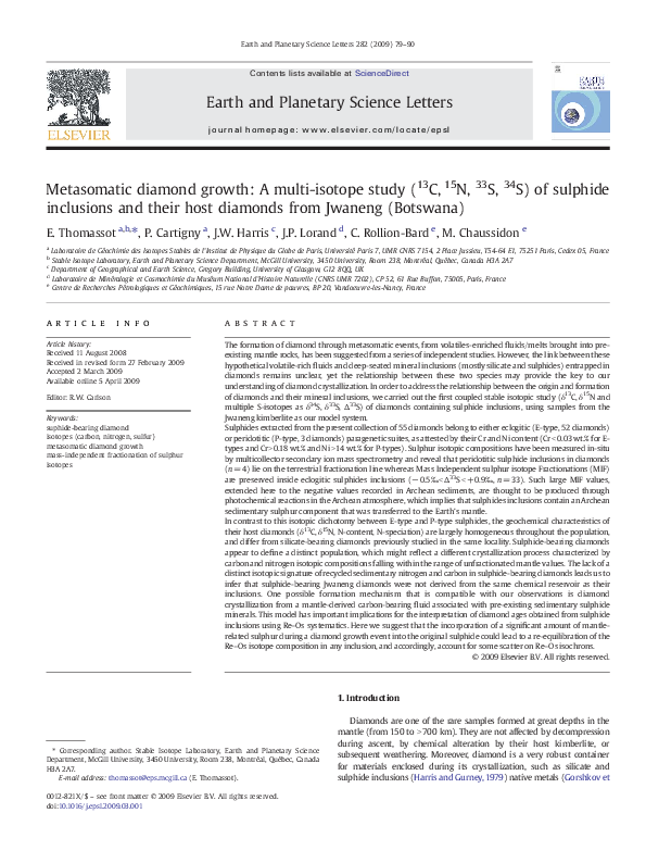 (PDF) Metasomatic diamond growth: A multi-isotope study (13C, 15N, 33S ...