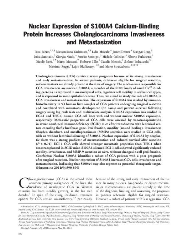 (PDF) Nuclear expression of S100A4 calcium-binding protein increases ...
