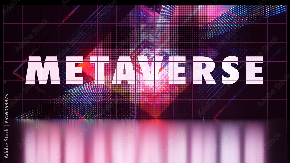 Metaverse text on digital LED wall illuminating the floor. Cyber 3D ...