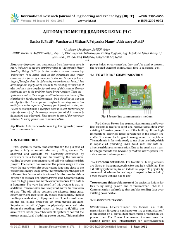 AUTOMATIC METER READING of Electricity by Using PLC (Repaired) | PDF ...