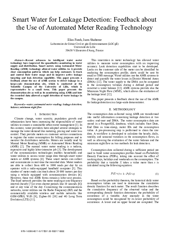 (PDF) Smart Water for Leakage Detection: Feedback about the Use of ...
