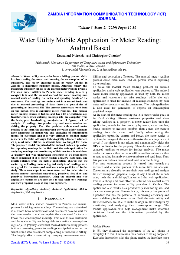 (PDF) Water Utility Mobile Application For Meter Reading: Android Based