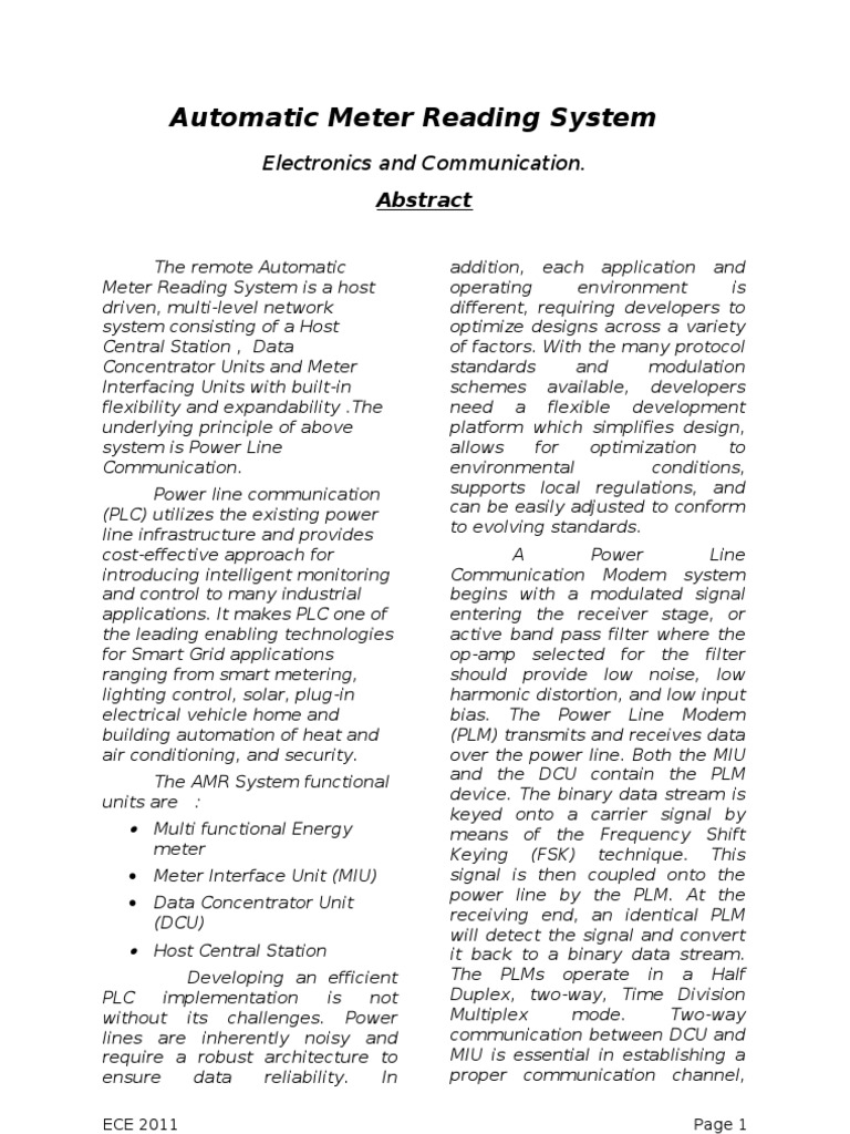 (PDF) Automatic Meter Reading (AMR) Automatic Meter Reading (AMR) for ...