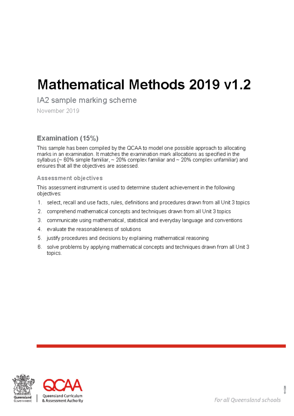 Mathematical Methods 19 IA2 Sample Marking Scheme Analysis - Studocu