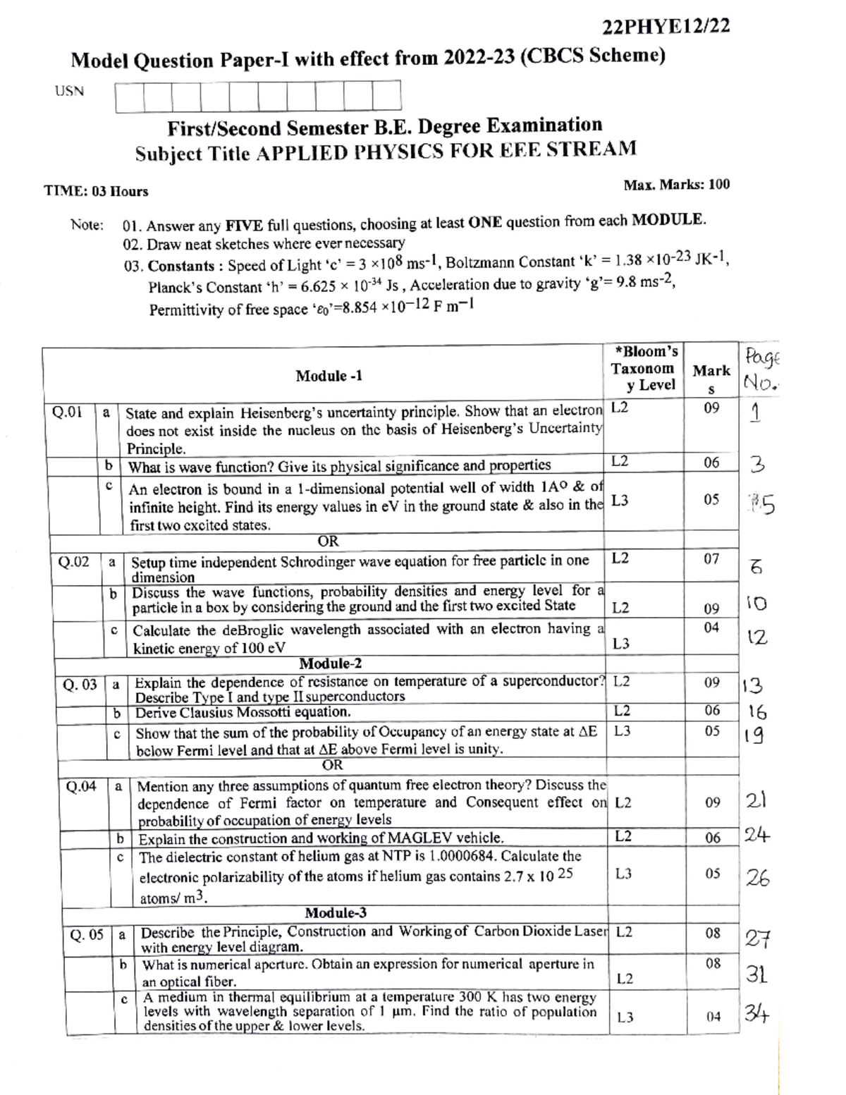 Applied Physics Model QP 22PHY12 - Solutions for Sem. Exam - Studocu