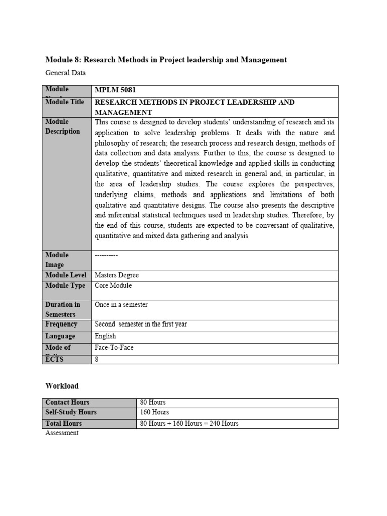 Course Outline RESEARCH METHODS IN PROJECT LEADERSHIP AND MANAGEMENT ...