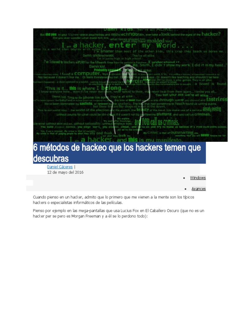 6 Métodos de Hackeo Que Los Hackers Temen Que Descubras | PDF ...