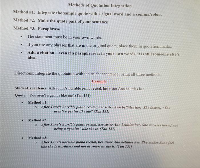Methods of Quotation Integration Method \#1: | Chegg.com