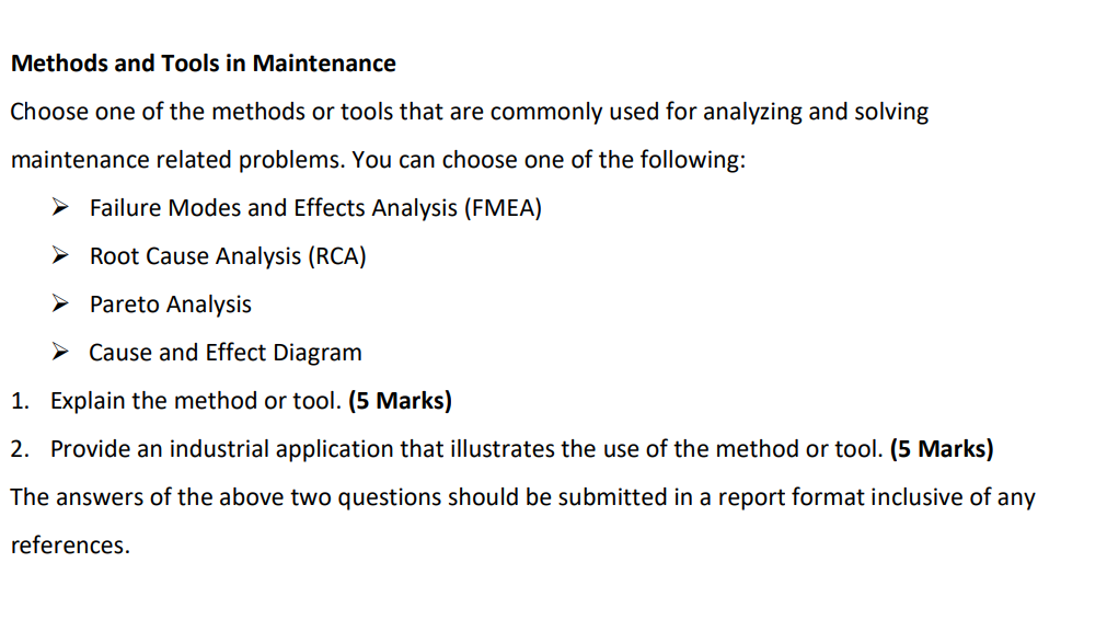 Solved Methods and Tools in Maintenance Choose one of the | Chegg.com