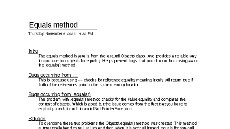 Java Equals Method Notes: Understanding Objects.equals() Usage - Studocu