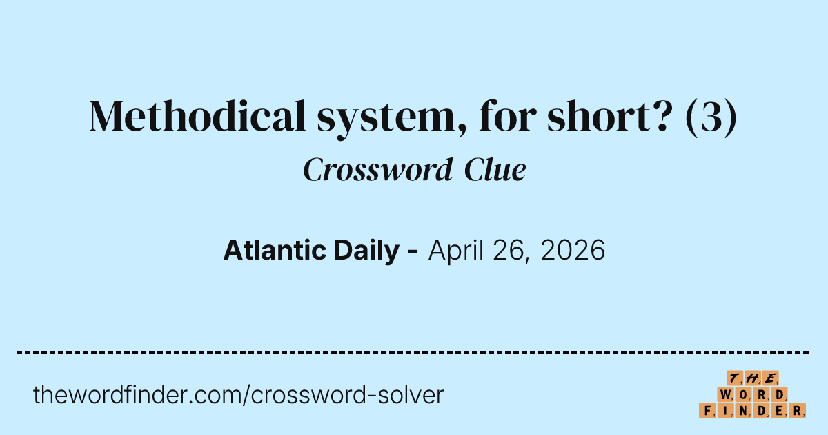 Methodical system, for short? - Crossword Clue Answer - April 26 2026