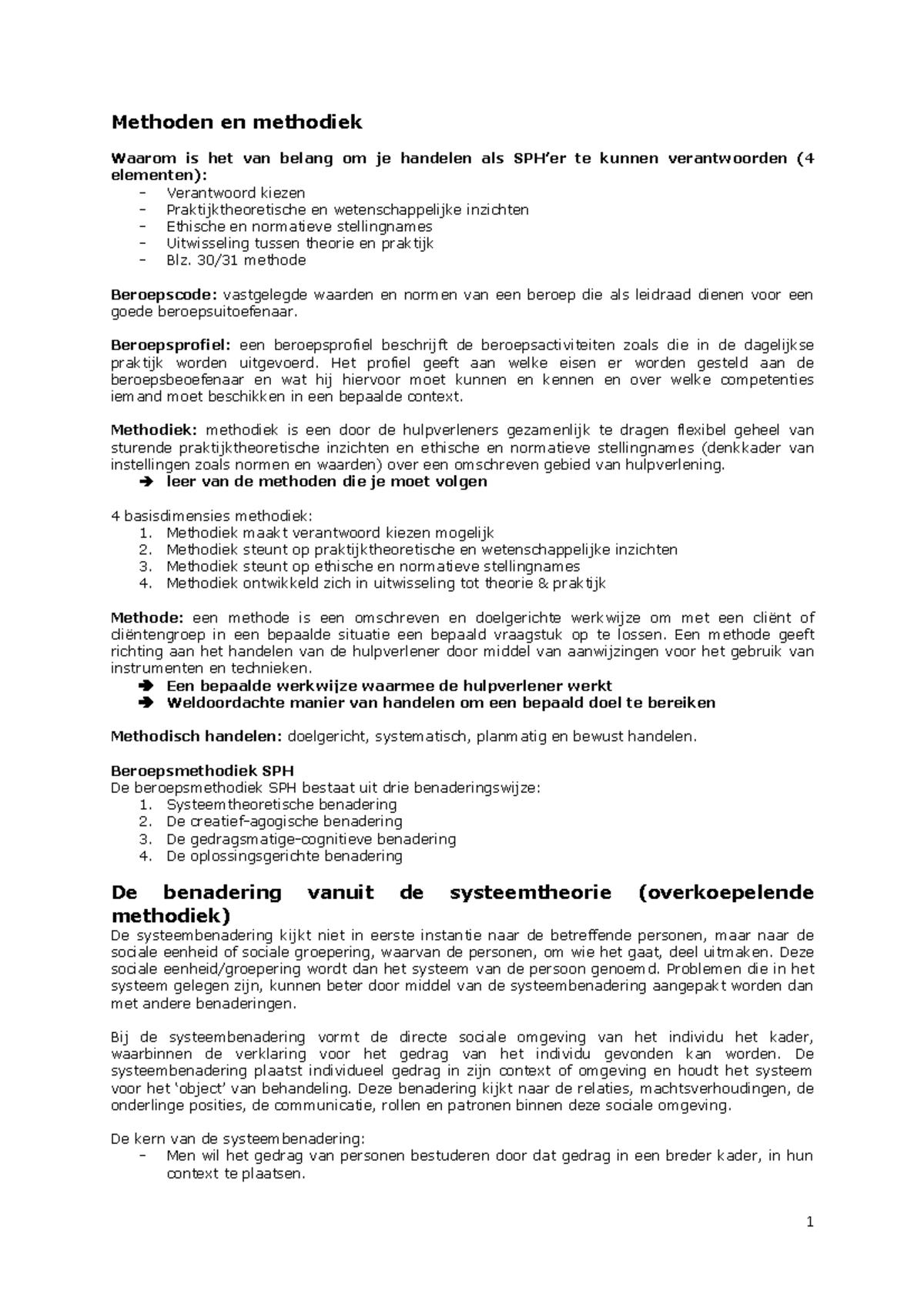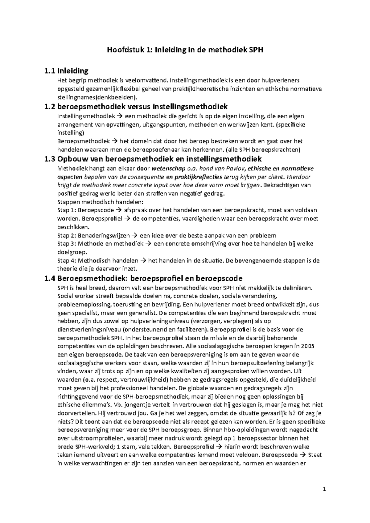 Samenvatting Methodiek - Hoofdstuk 1: Inleiding in de methodiek SPH 1 ...
