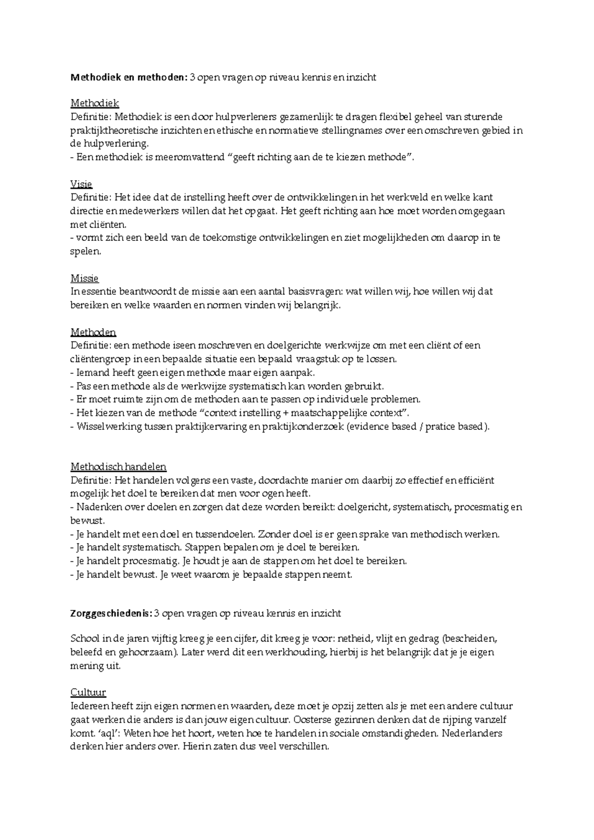 10 uitgebreide oefenvragen Methodiek - Inleiding Methodiek - Stuvia NL