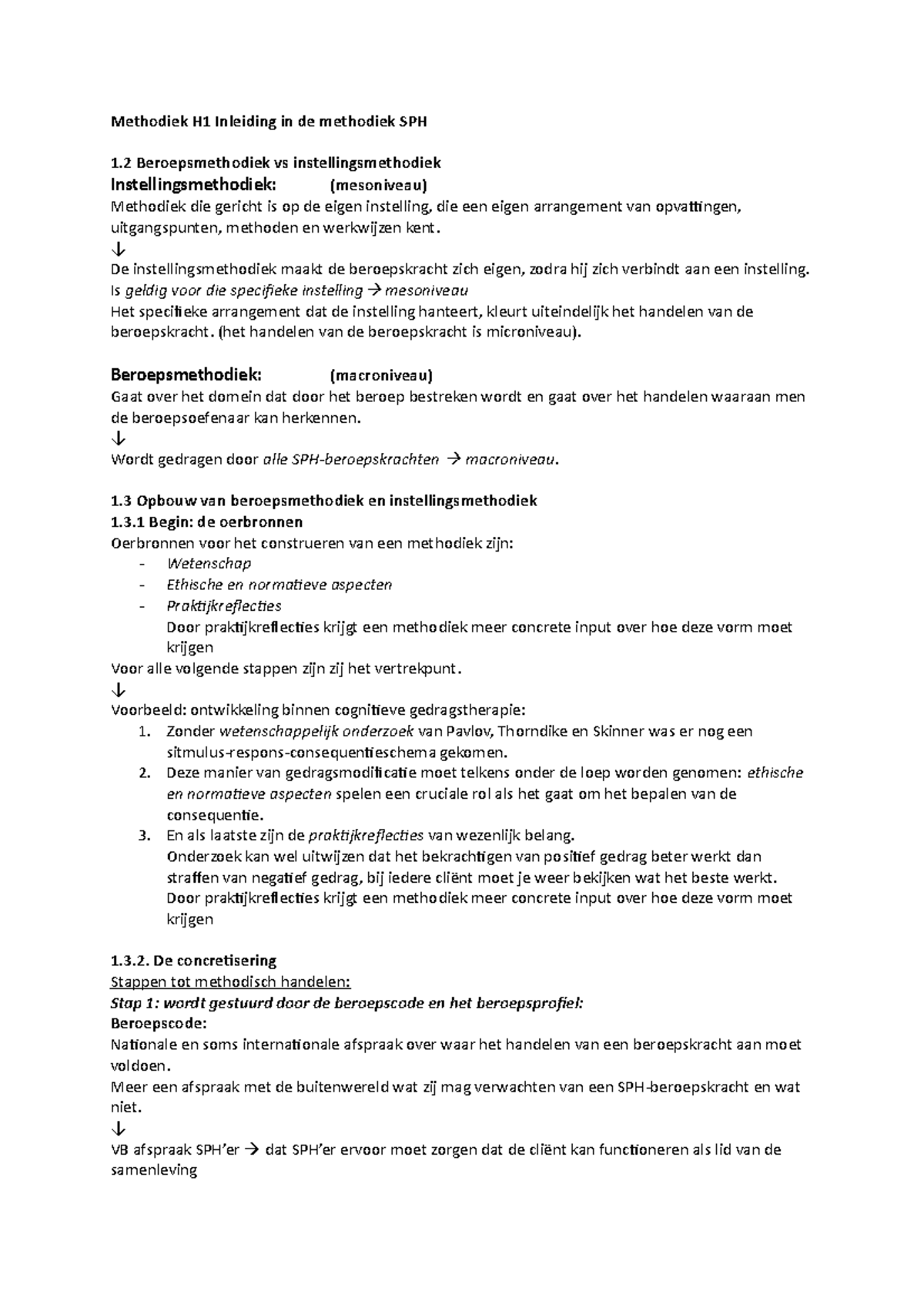 Methodiek samenvatting H1 Inleiding in de methodiek SPH - Methodiek H1 ...