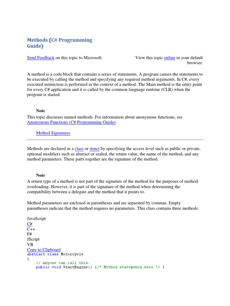 Methods csharp | PDF | C Sharp (Programming Language) | Software ...