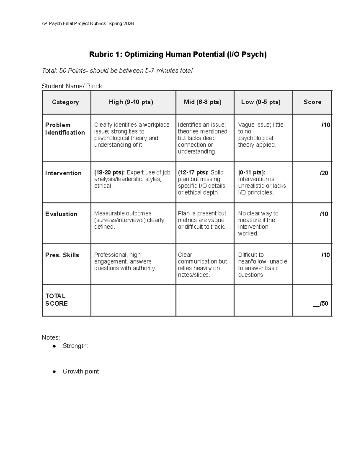 AP Psych Final Project Spring 2026: Comprehensive Presentation Rubrics ...