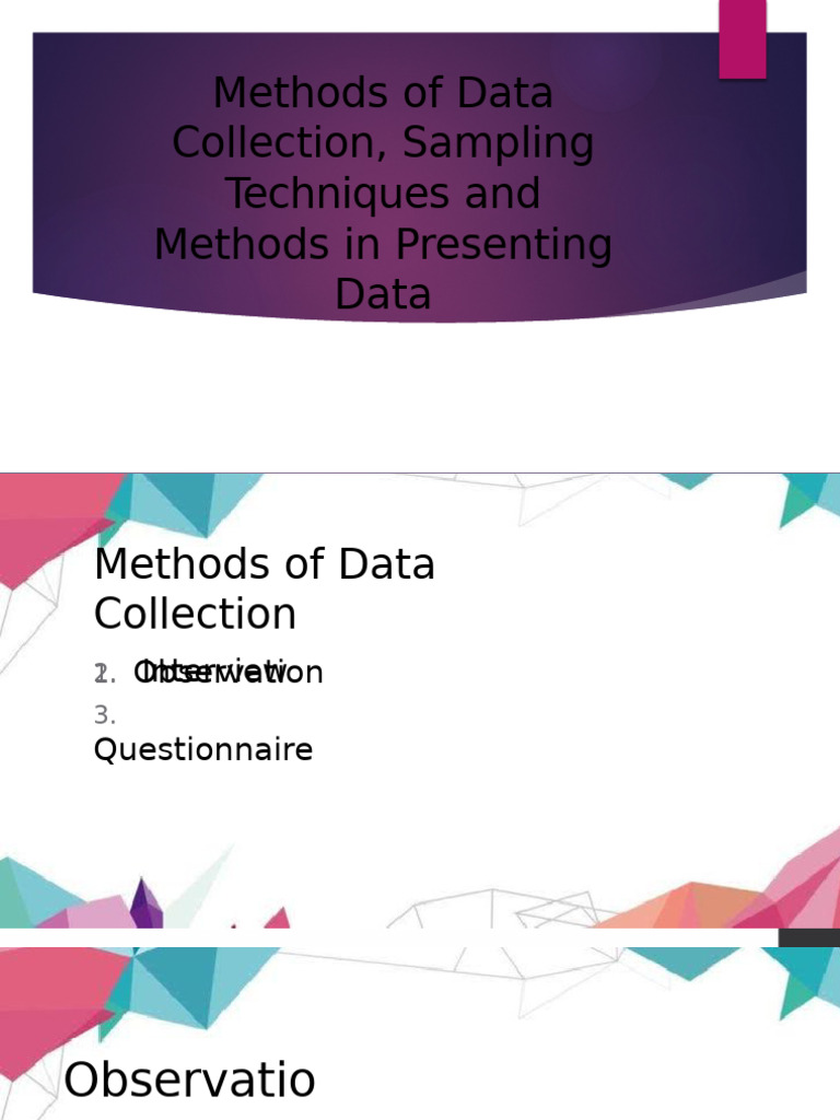 Methods of Data Collection Sampling Techniques and Presentation of Data ...
