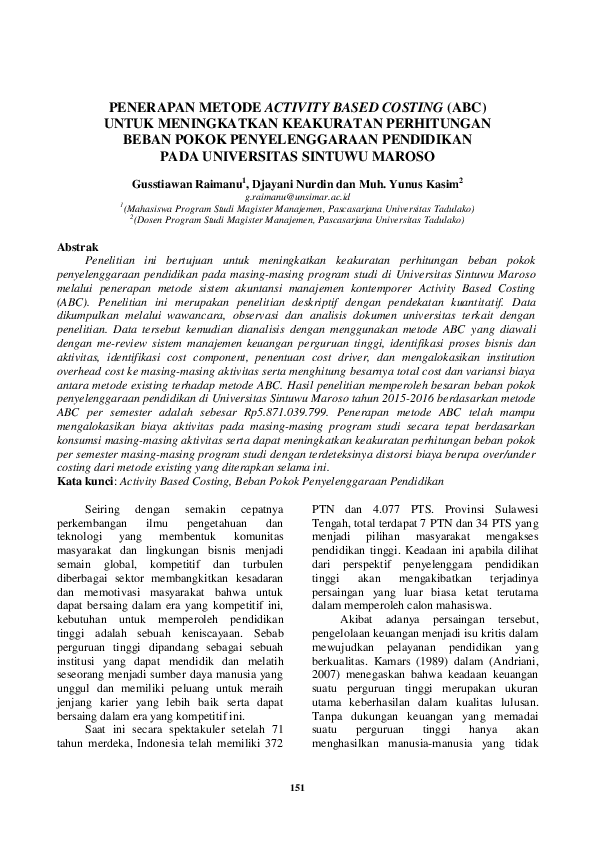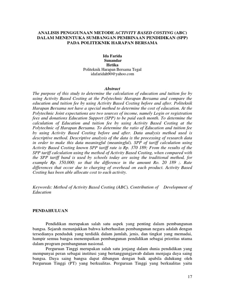 (PDF) Penerapan Metode Activity Based Costing (Abc) Untuk Meningkatkan ...