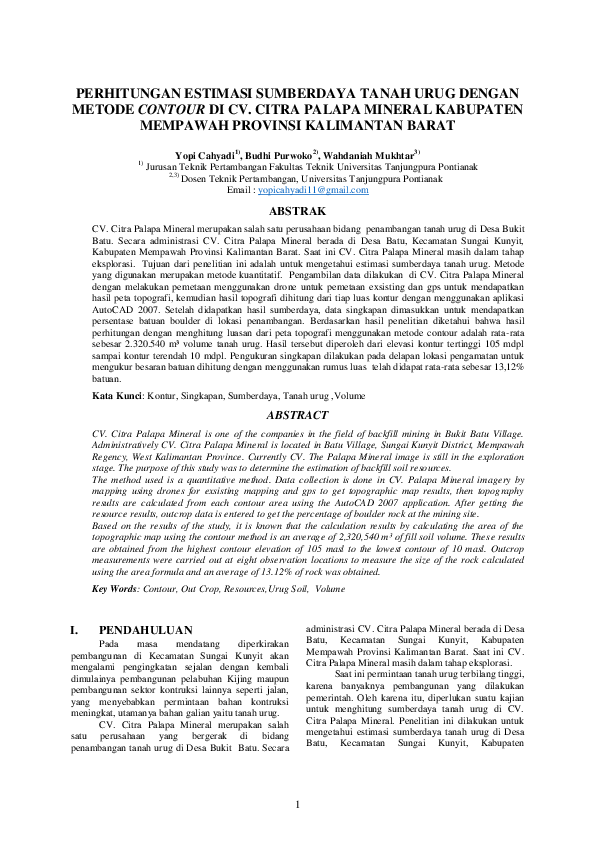 (PDF) Perhitungan Estimasi Sumberdaya Tanah Urug Dengan Metode Contour ...