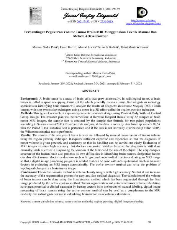 (PDF) Perbandingan Pegukuran Volume Tumor Brain MRI Menggunakan Teknik ...