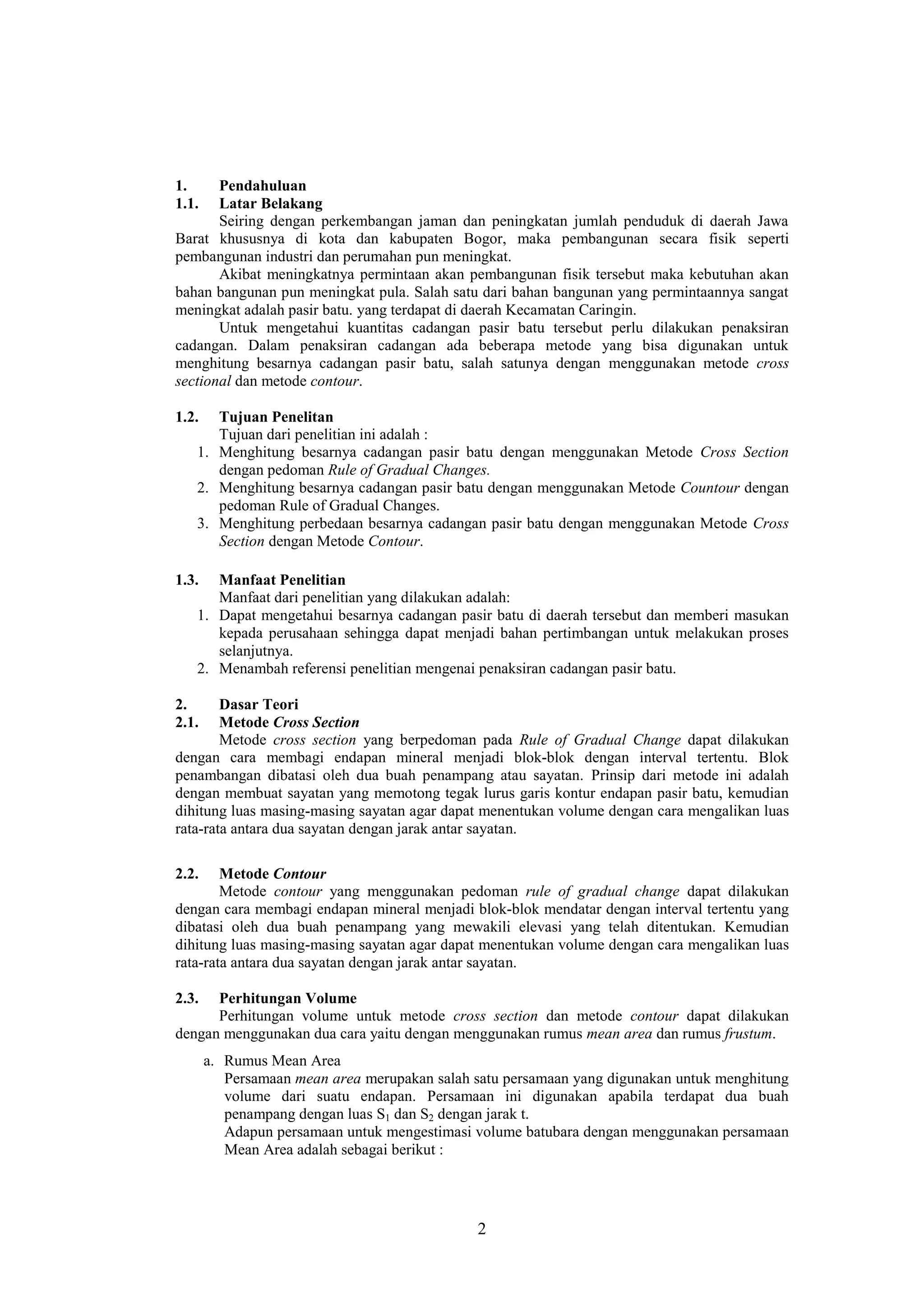PENAKSIRAN SUMBERDAYA BATU ANDESIT METODE CROSS SECTION DAN METODE ...