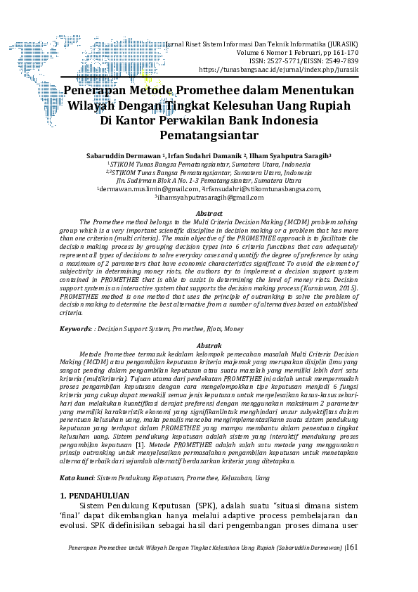 (PDF) PENERAPAN METODE PROMETHEE PADA SISTEM PENUNJANG KEPUTUSAN ...