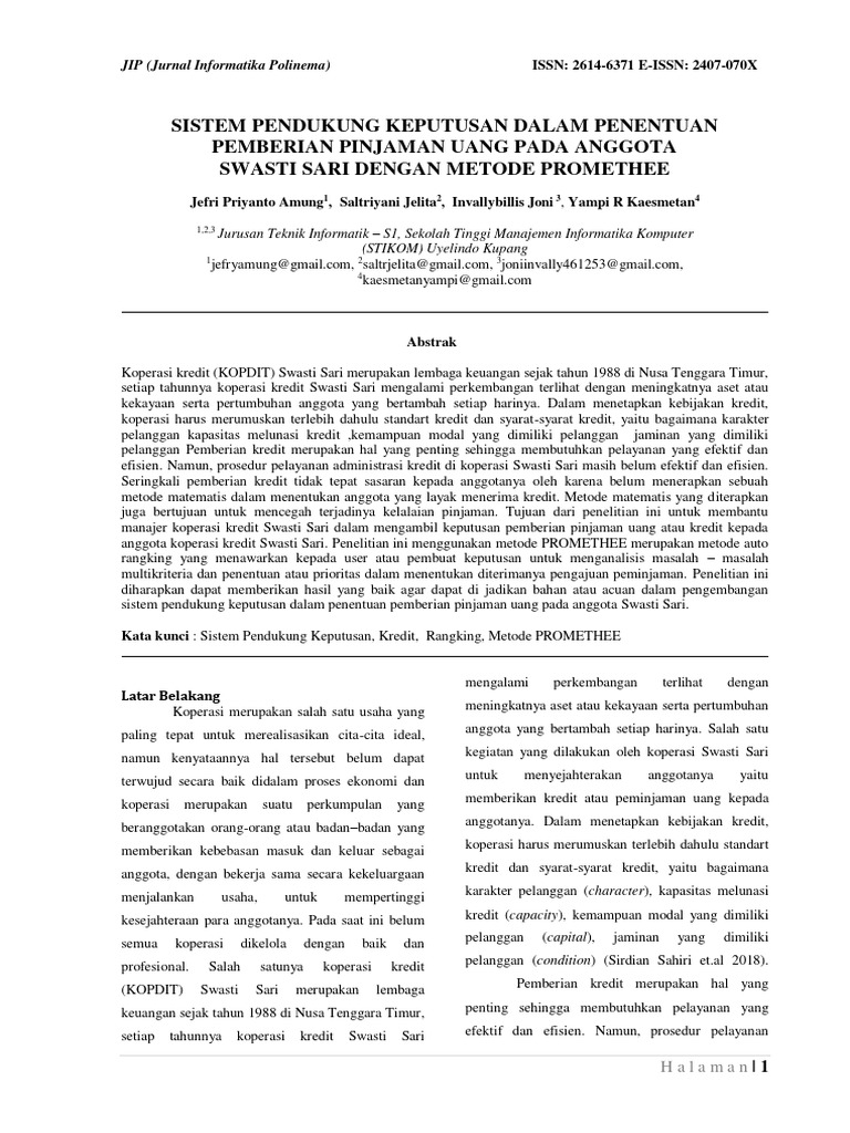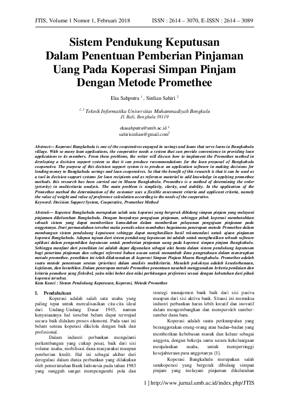 (PDF) Metode Promethee II Dalam Menentukan Kelayakan Pinjaman Koperasi ...