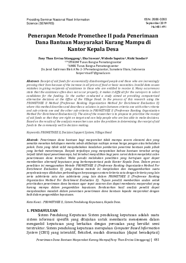 (PDF) Implementasi Metode Promethee dalam Penentuan Penerima Bantuan ...