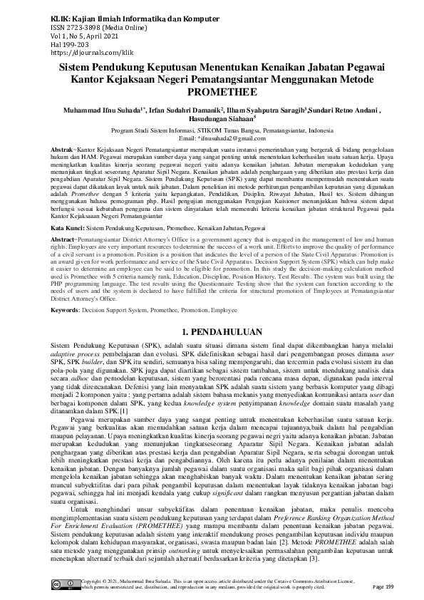 (PDF) Sistem Pendukung Keputusan Menentukan Kenaikan Jabatan Pegawai ...