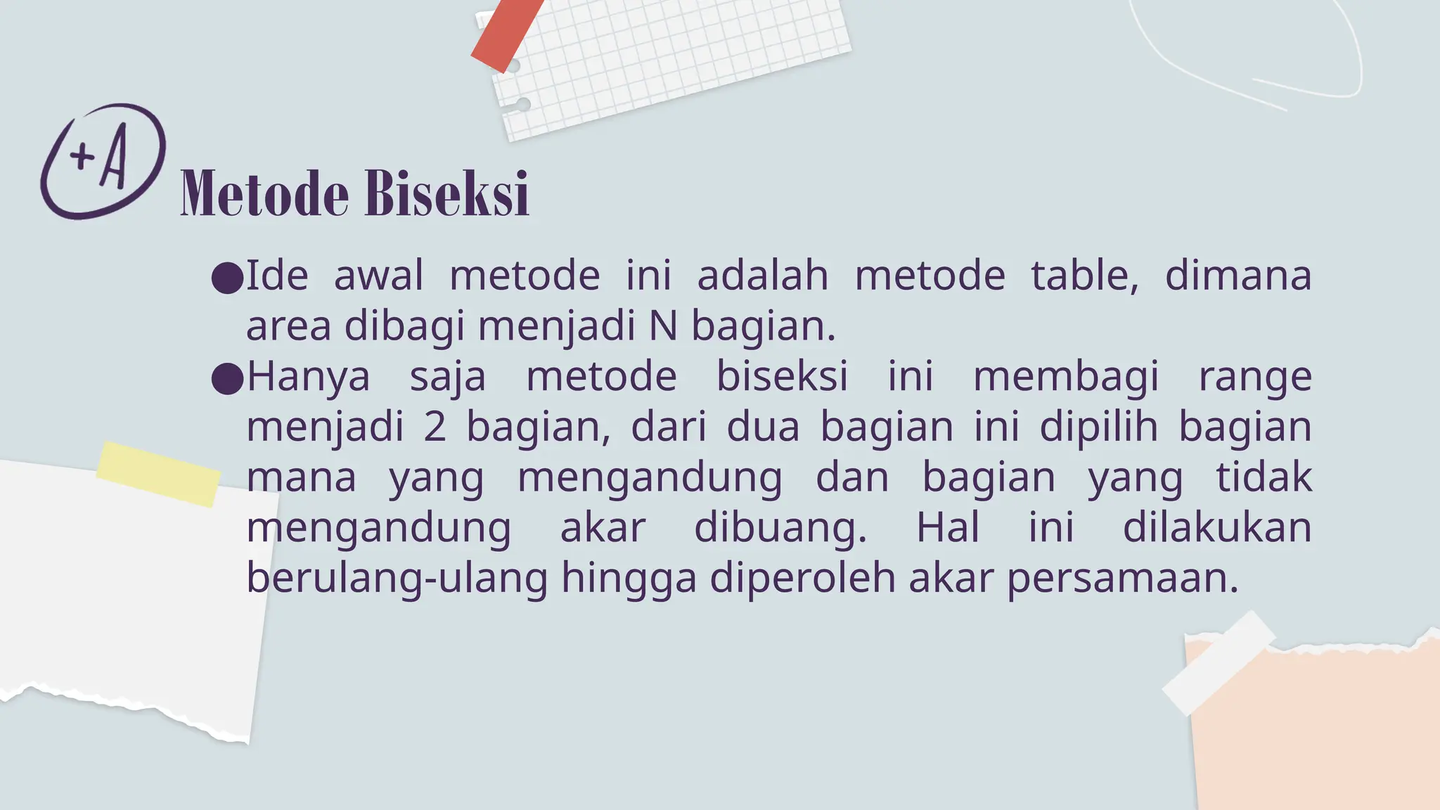 Metode Biseksi atau bagi dua untuk mencari akar persamaan non linier | PPTX