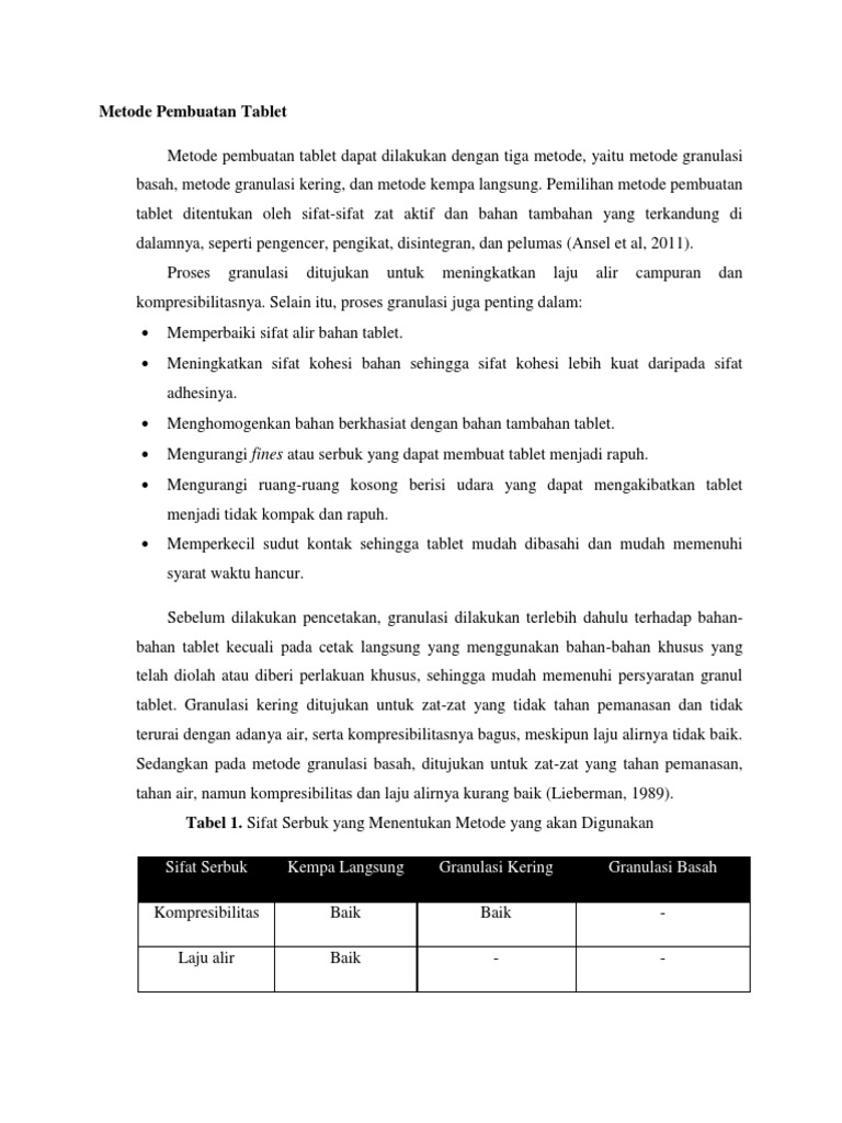 Teori Metode Pembuatan Tablet & Permasalahan Tablet | PDF