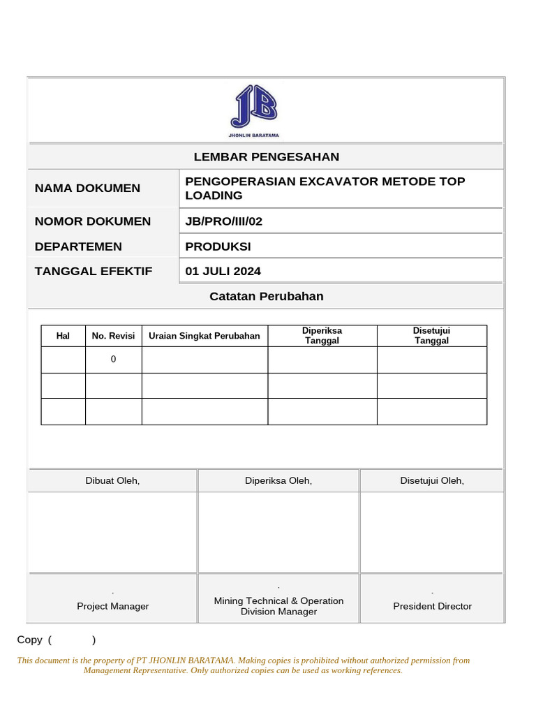 JB-PRO-III-02 Pengoperasian Excavator Metode Top Loading | PDF