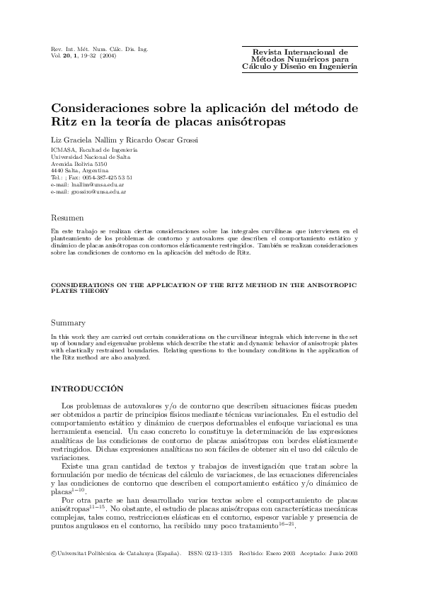 (PDF) Consideraciones sobre la aplicación del método de Ritz en la ...