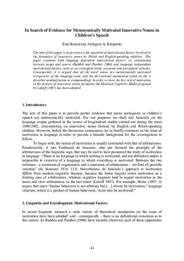 (PDF) In Search of Evidence for Metonymically Motivated Innovative ...