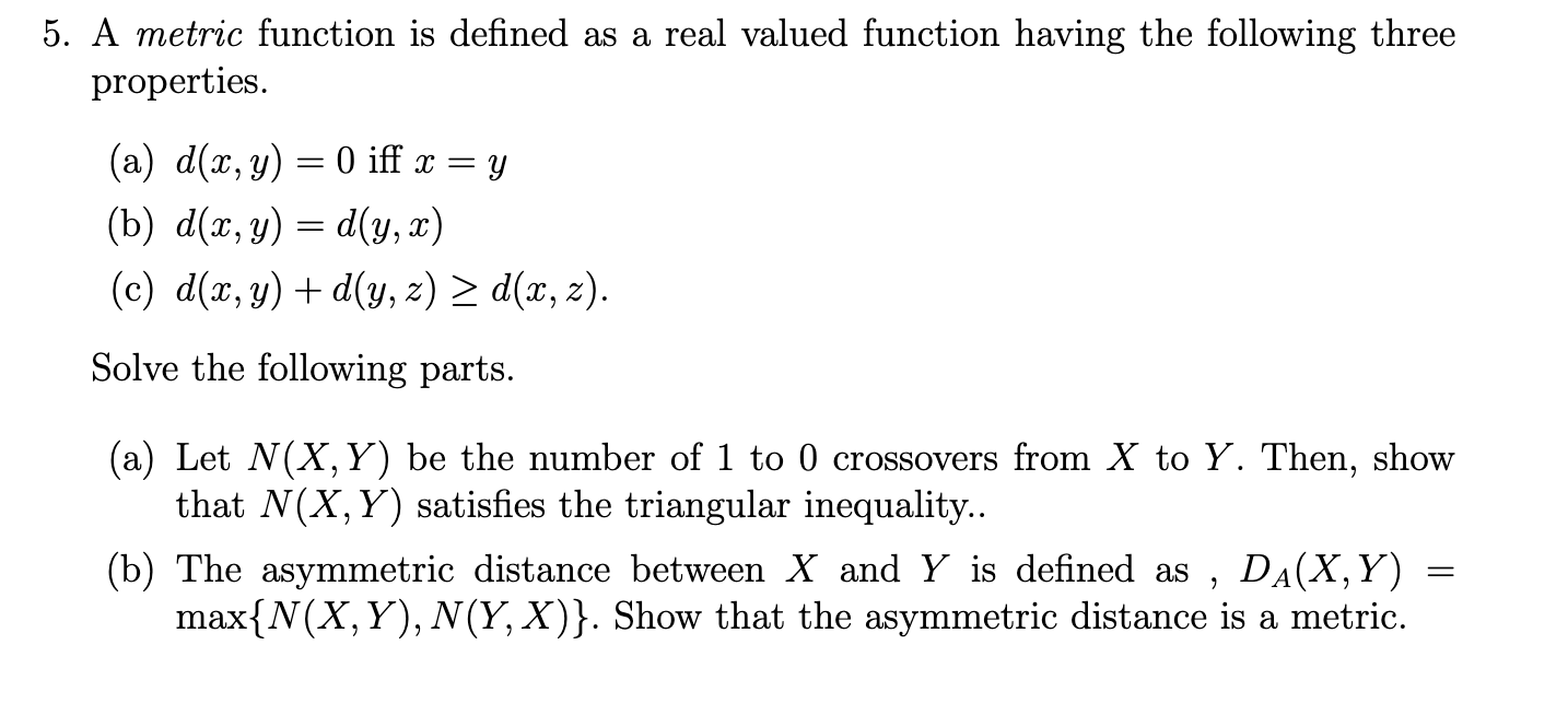 Solved Metric and distance 1. Show that the discrete metric | Chegg.com