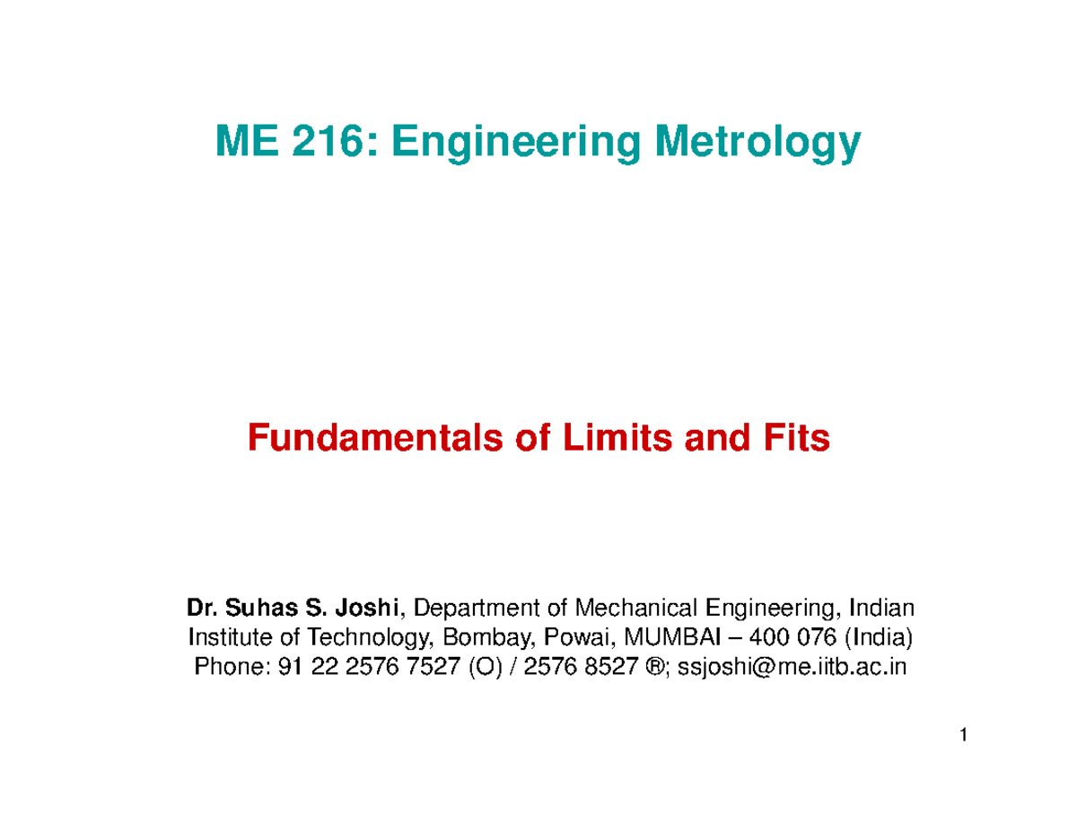 Metrology - Notes - Fundamentals of Limits and Fits ME 216: Engineering ...