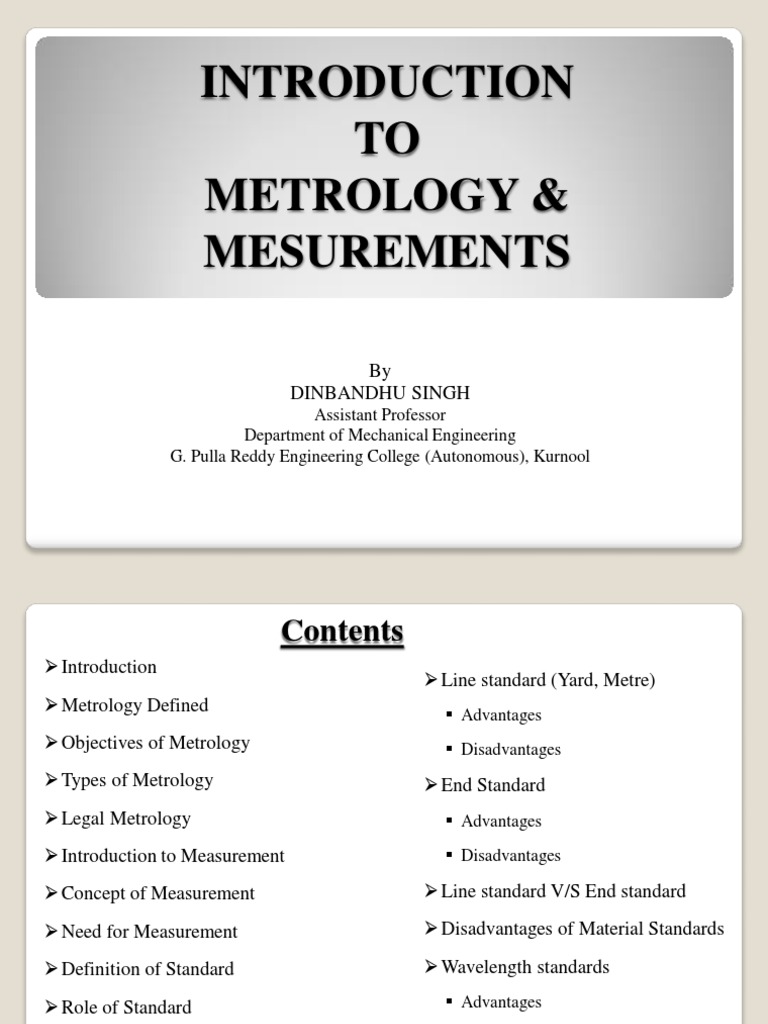 Intoduction To Metrology & Measurements | PDF | Metrology | Measurement