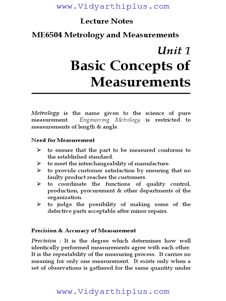 Metrology and Measurements - Lecture Notes, Study Material and ...