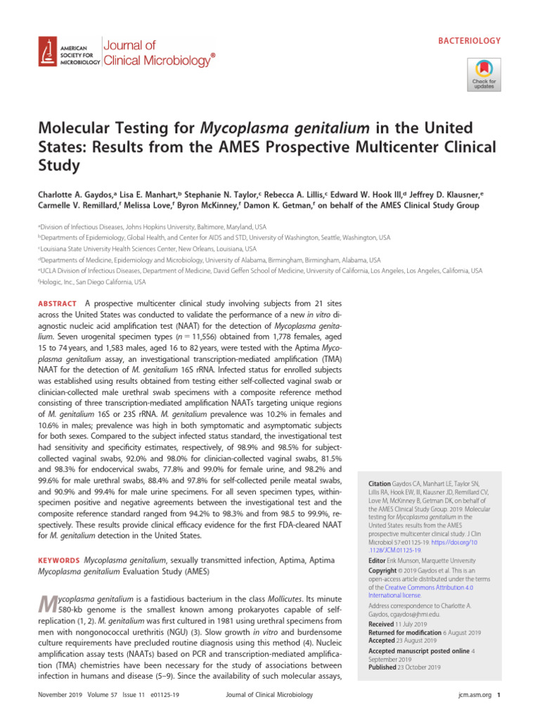 2019 Molecular Testing For Mycoplasma Genitalium in The United States ...