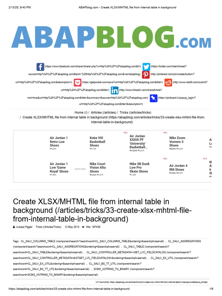 Create XLSX - MHTML File From Internal Table in Background | PDF ...