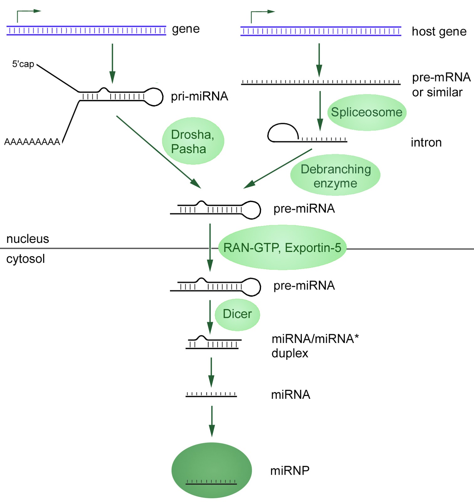 Maturation du pri-miARN (voie canonique). D'après [334]. | Download ...