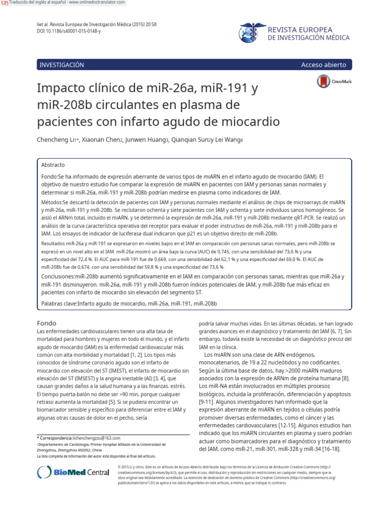Biomarcadores miARN en infarto agudo de miocardio | PDF | Infarto de ...