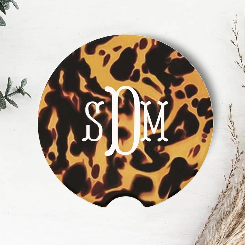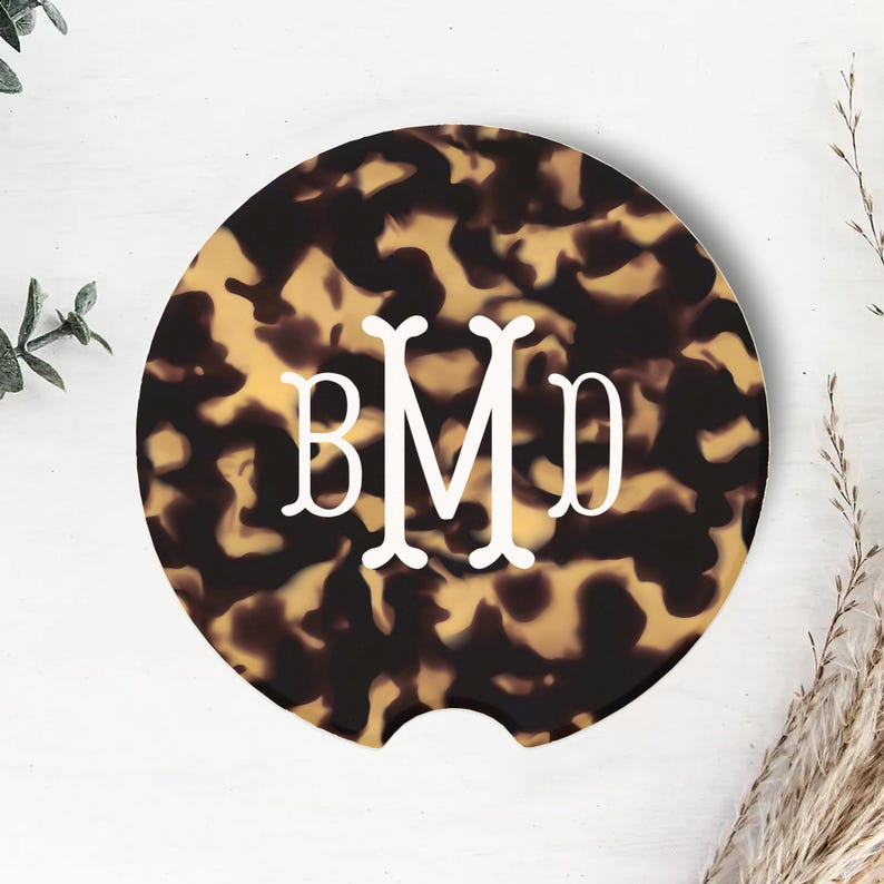 Custom Monogram Tortoise Shell Car Coaster Set Personalized Car Coaster ...