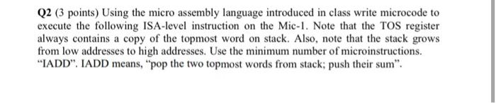 Solved Q2 (3 points) Using the micro assembly language | Chegg.com
