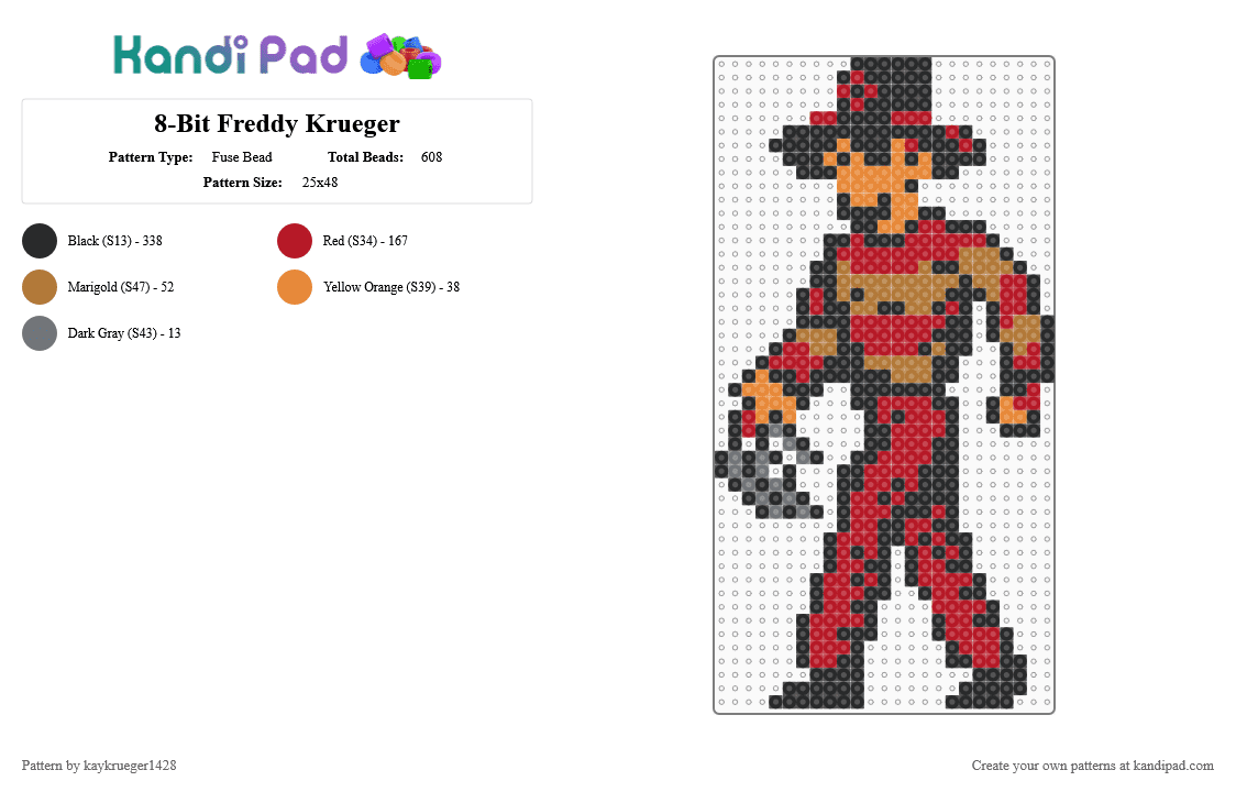 8-Bit Freddy Krueger Fuse Bead Pattern - Kandi Pad | Kandi Patterns ...