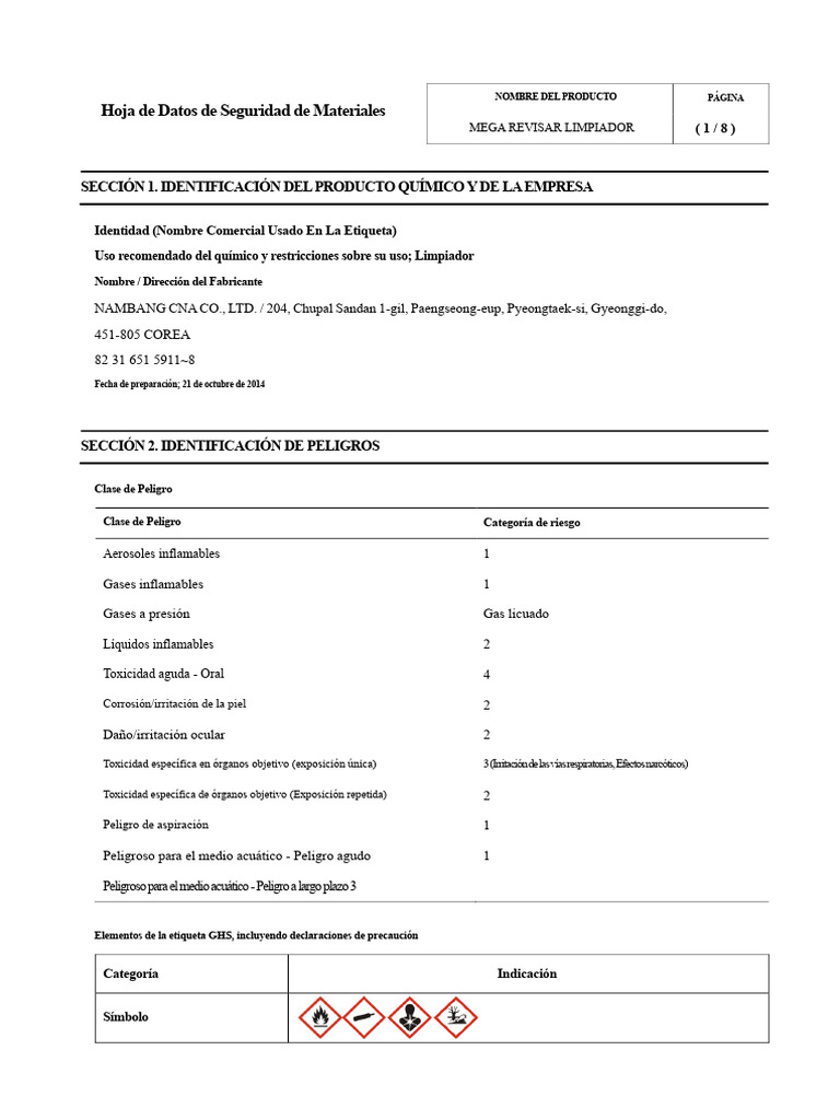 Mega - Check - Cleaner - MSDS English Ver | PDF