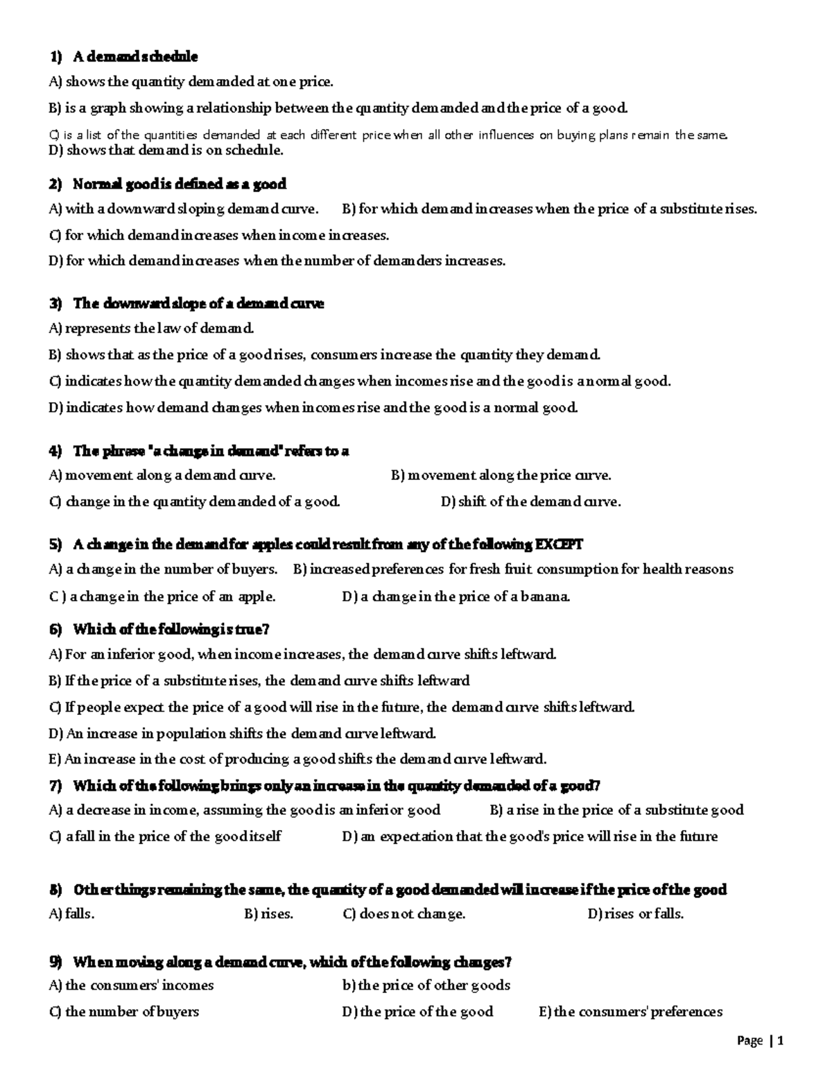 Revision final to micro economic issues - Page | 1 A demand schedule A ...