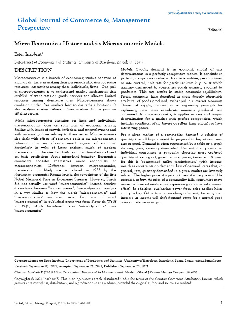 Micro Economics History and Its Microeconomic Models | PDF ...